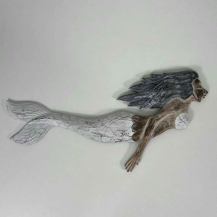 Esta sereia é mais do que uma simples decoração; ela é uma expressão de arte que traz a essência do mar e da cultura indonésia para o seu lar. Ideal para quem aprecia o estilo rústico e deseja criar um espaço que transmita paz e harmonia.